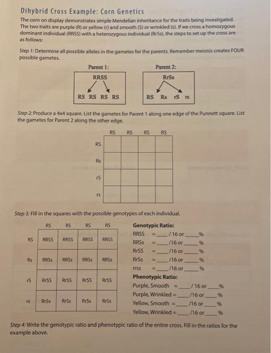 We have two genes shape and color. Set up a punnett square. Some of the worksheets displayed are dihybrid. The above result is represented using a 4 x 4 punnett square. A dihybrid cross is a larger punnett square with 16 possible combinations instead of 4. A dihybrid cross tracks two traits. All the four possible combinations of gametes for yellow seed color and round seed shape pea plant are placed from top to bottom of the first column. Use the gametes from #3 and #4 to set up a punnett square below. R is dominant allele with round phenotype and w is recessive allele with wrinkled phenotype. To predict the probability of These two traits are independent of each other. · determine the possible gene pairs donated by each parent. Learn how to use punnett squares to calculate probabilities of different phenotypes.